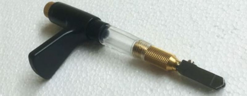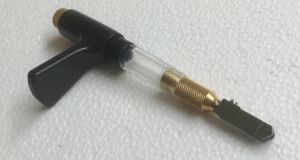 High quality glass cutter with paddle to transfer pressure from finger tips to palm. This cutter is suitable for people with weakness or discomfort in using a pencil grip cutter. The paddle has 4 settings to suit the size of your hand.