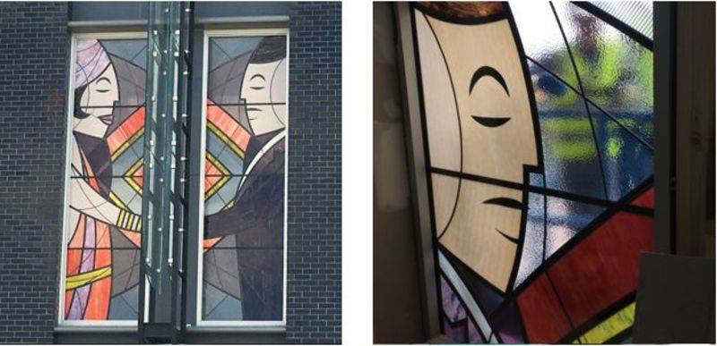 These large scale leadlights were created by our team for the new Prospect Cinema Complex, adapted from a design created by graphic artist Matthew Stuckey.